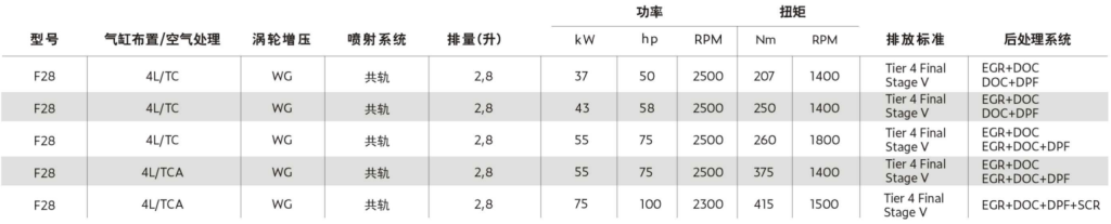 菲亞特動(dòng)力科技推出了一款全新2.8升發(fā)動(dòng)機(jī),以滿足緊湊型工程機(jī)械裝備不斷提高的挑戰(zhàn)性需求。得益于F28緊湊布局設(shè)計(jì)和提高的輸出功率,同時(shí)尺寸比競爭對(duì)手的大多數(shù)發(fā)動(dòng)機(jī)小5%,使其可提供兼顧對(duì)布置空間和性能表現(xiàn)要求的首選發(fā)動(dòng)機(jī)解決方案。其優(yōu)異的扭矩響應(yīng)能夠滿足多種設(shè)備的需求,適用于小型工程機(jī)械物料搬運(yùn)設(shè)備,以及固定機(jī)械應(yīng)用。